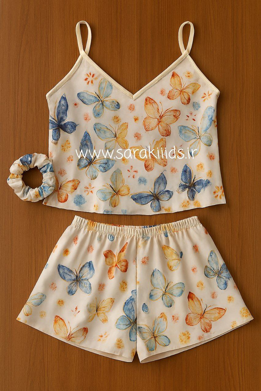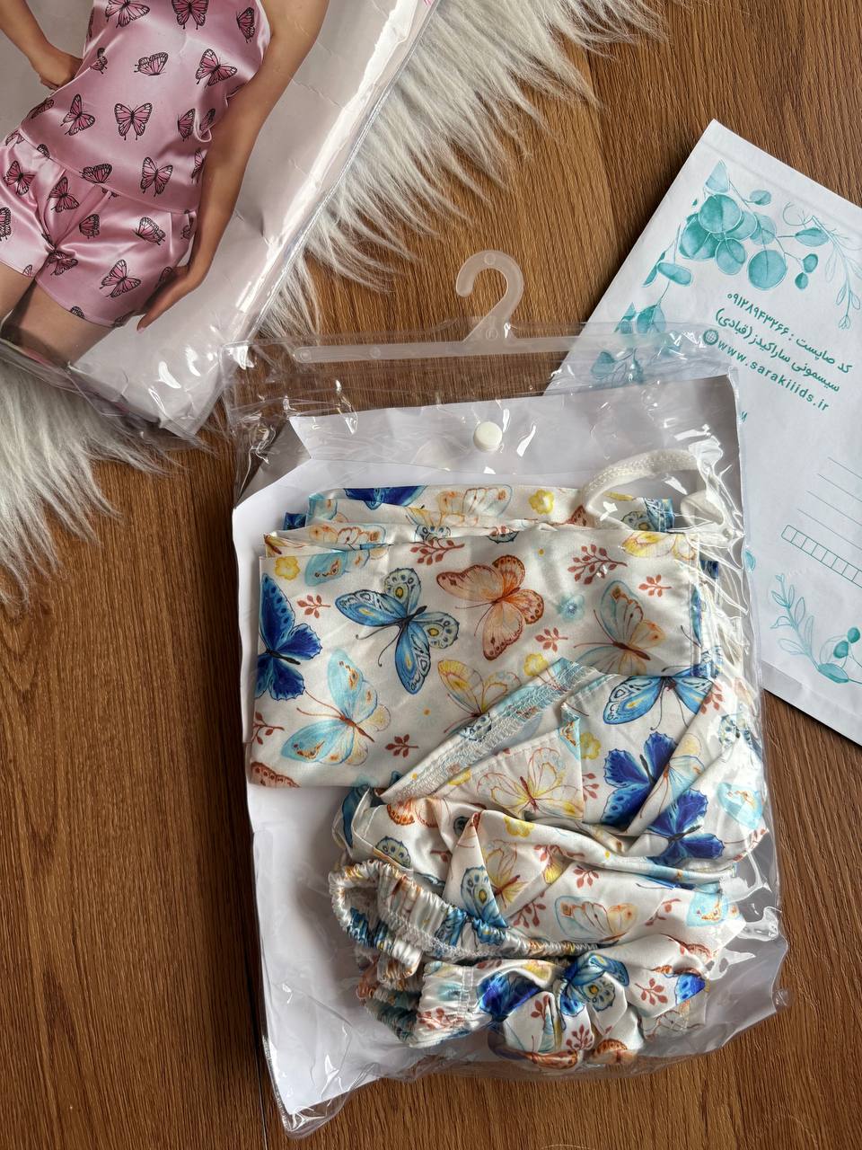لباس خواب ساتن سه تکه (طرح پروانه)