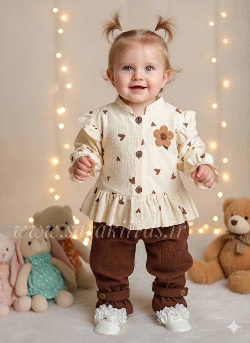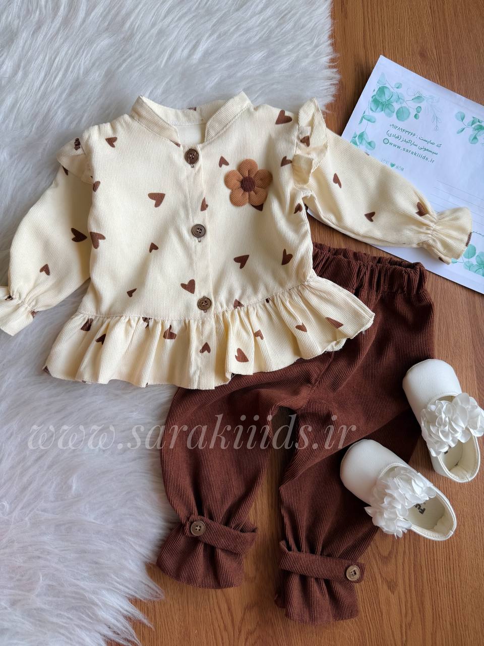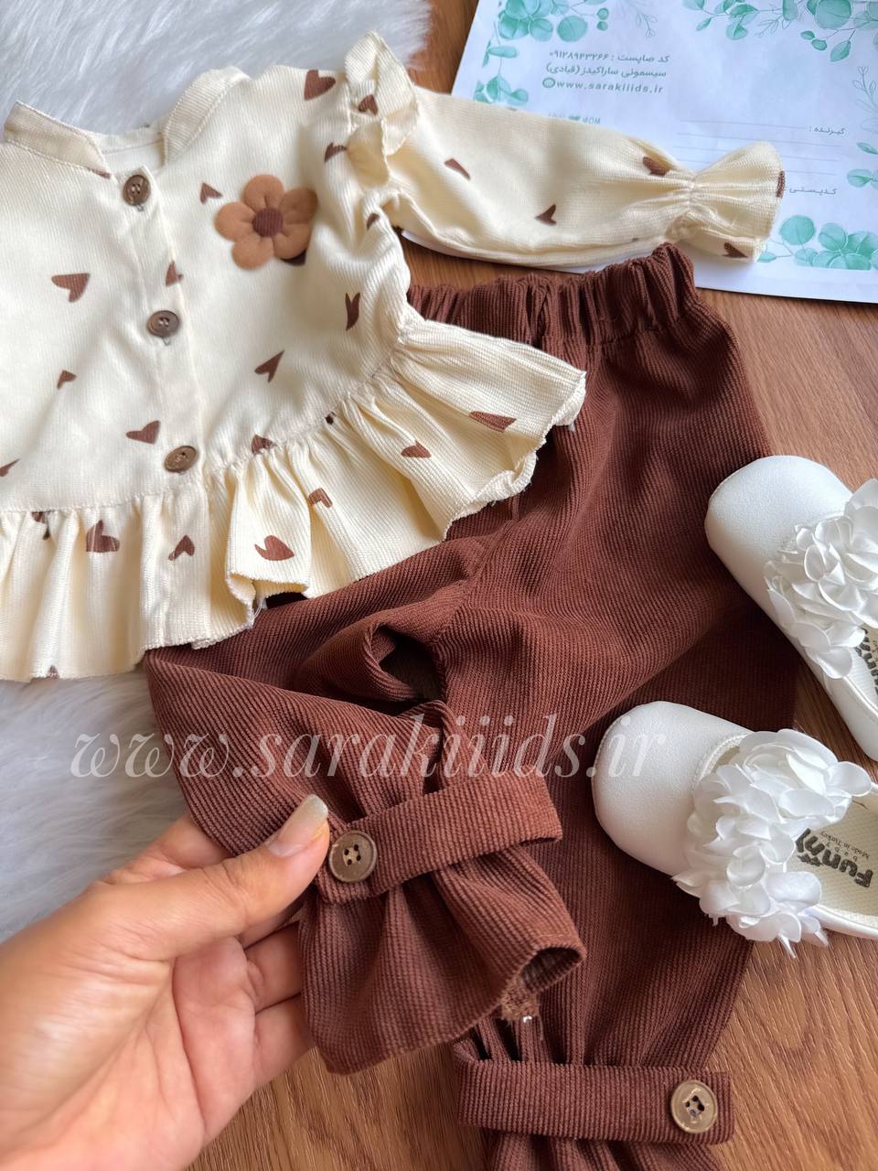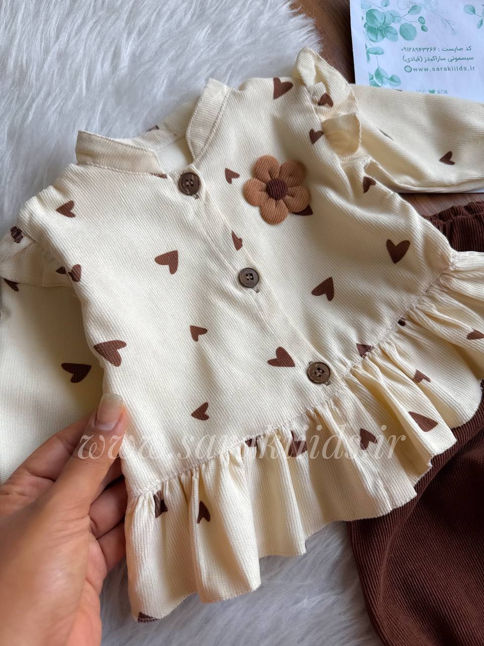 مانتوو شلوار دخترونه طرح قلب 🤎🤎دو رنگ کرم و نسکافه ای