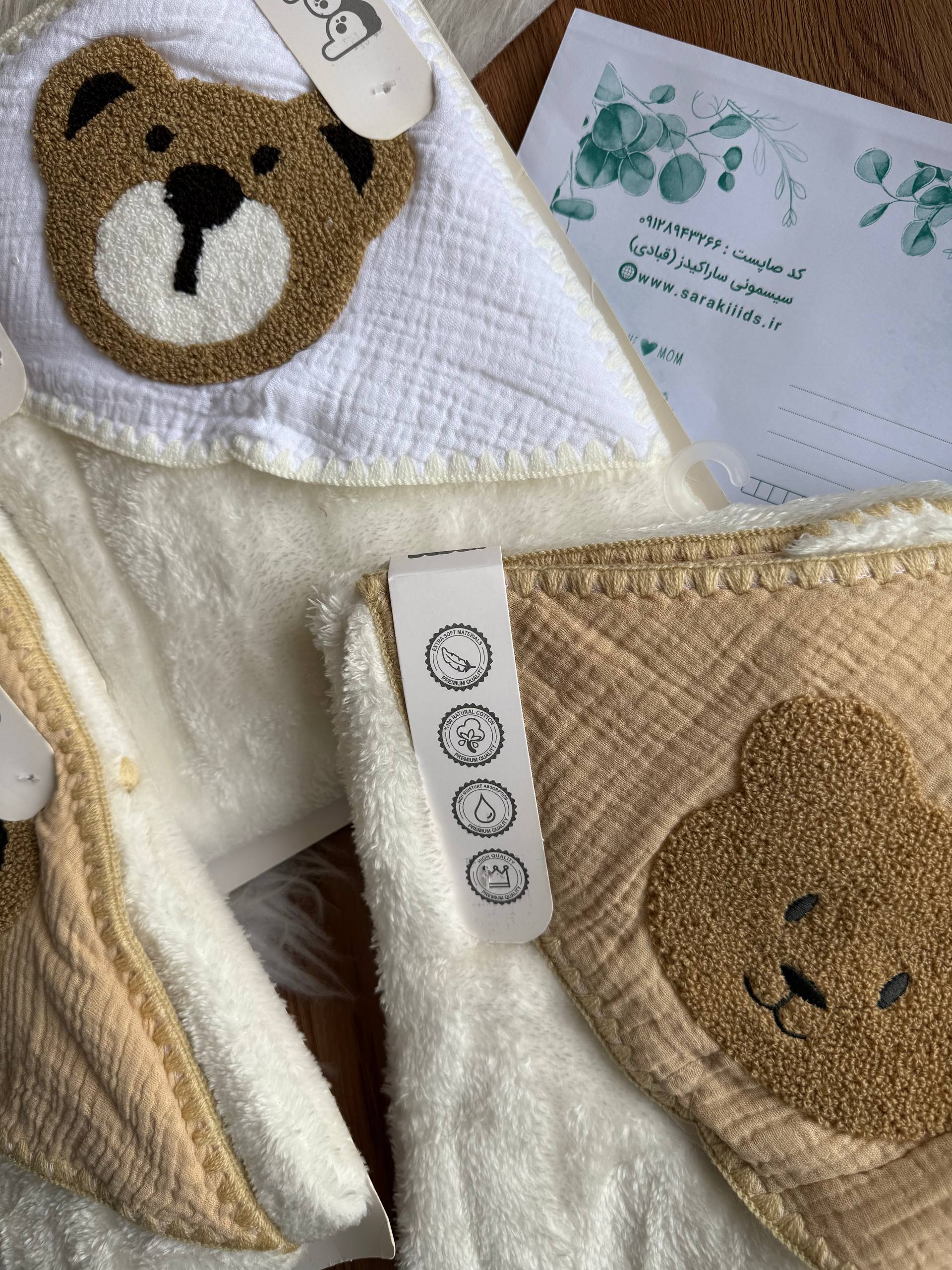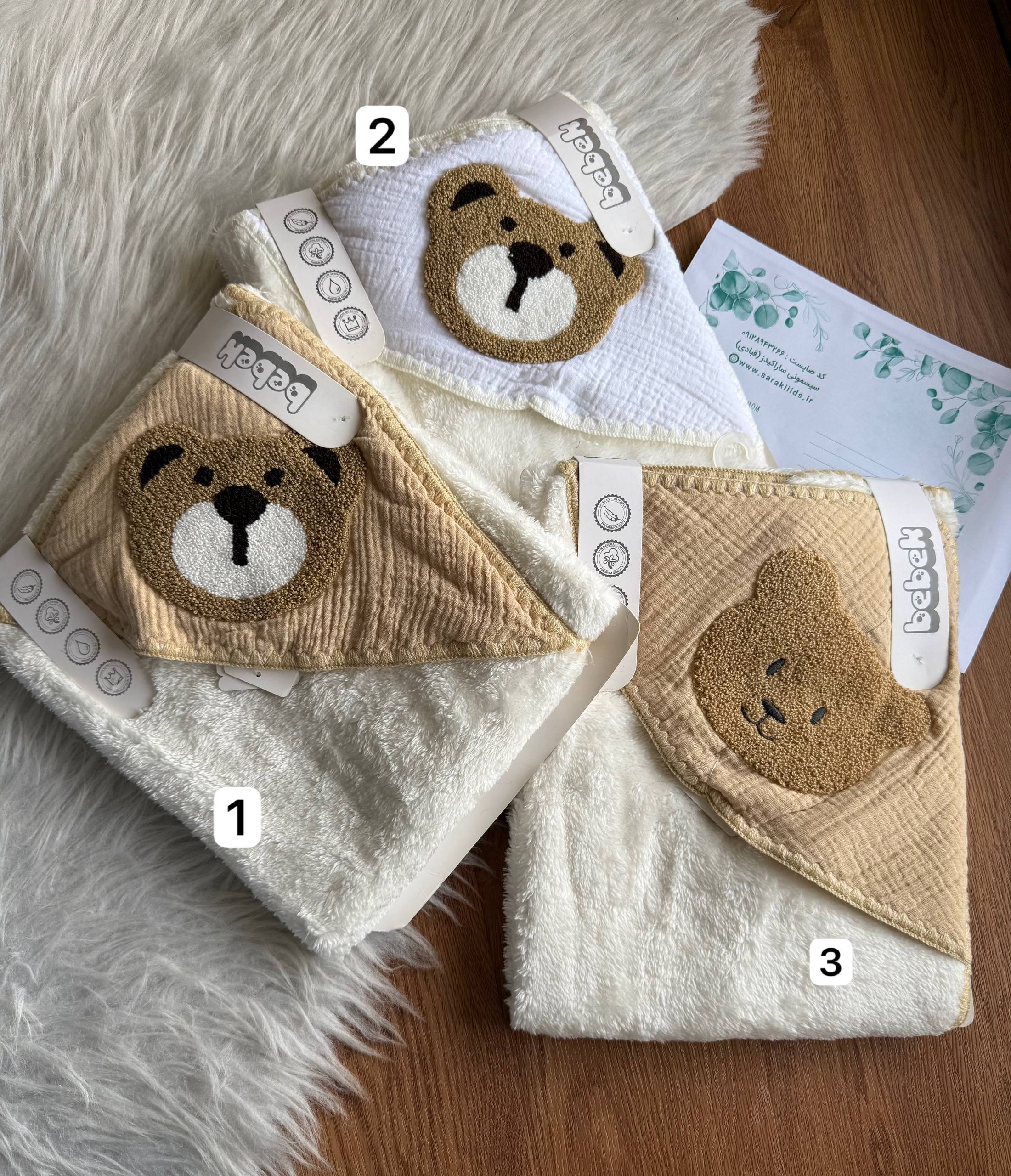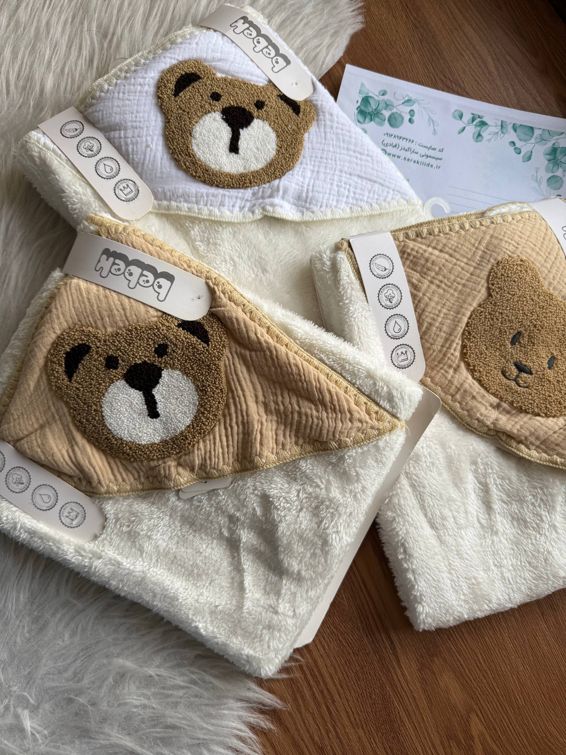 پتو خز دار کلاهدار موسلین نوزاد طرح خرس یک پتوی نوزادی عالی و با کیفیت است.