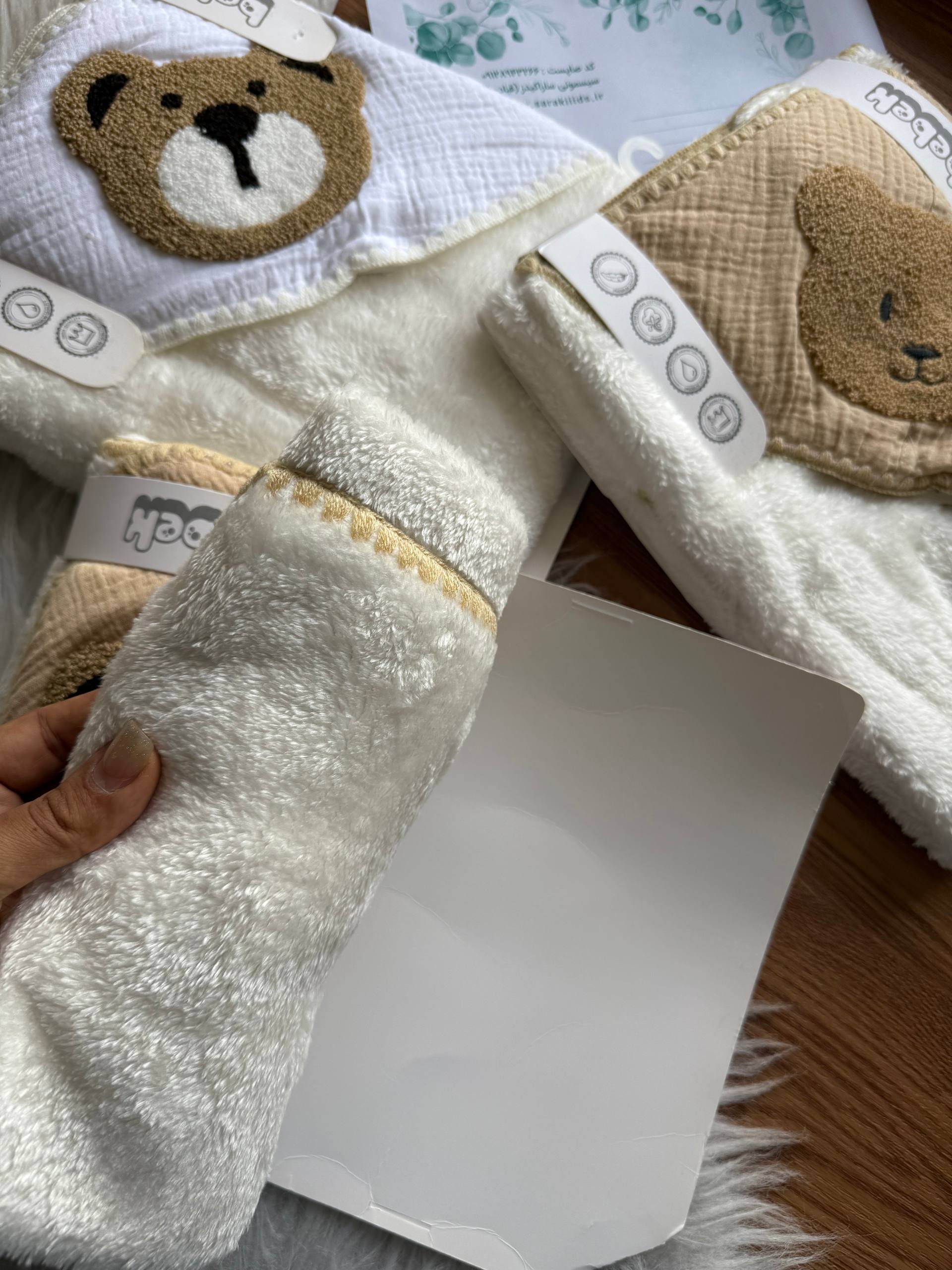 ویژگی های پتو خز دار کلاهدار موسلین نوزاد طرح خرس :