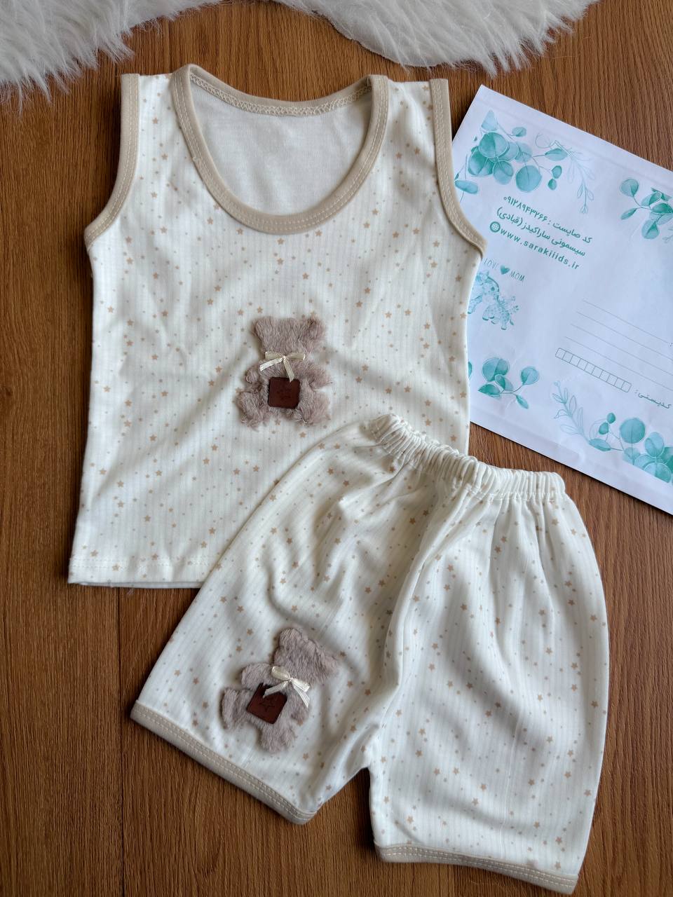 رکابی و شلوارک نخ پنبه خرس کوچولو🥹(ارسال ۳۰ مهر )