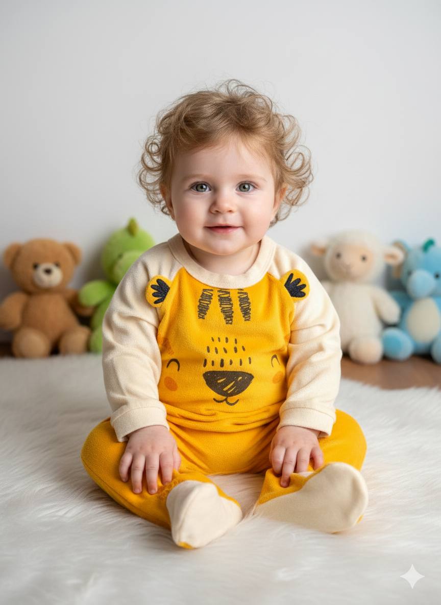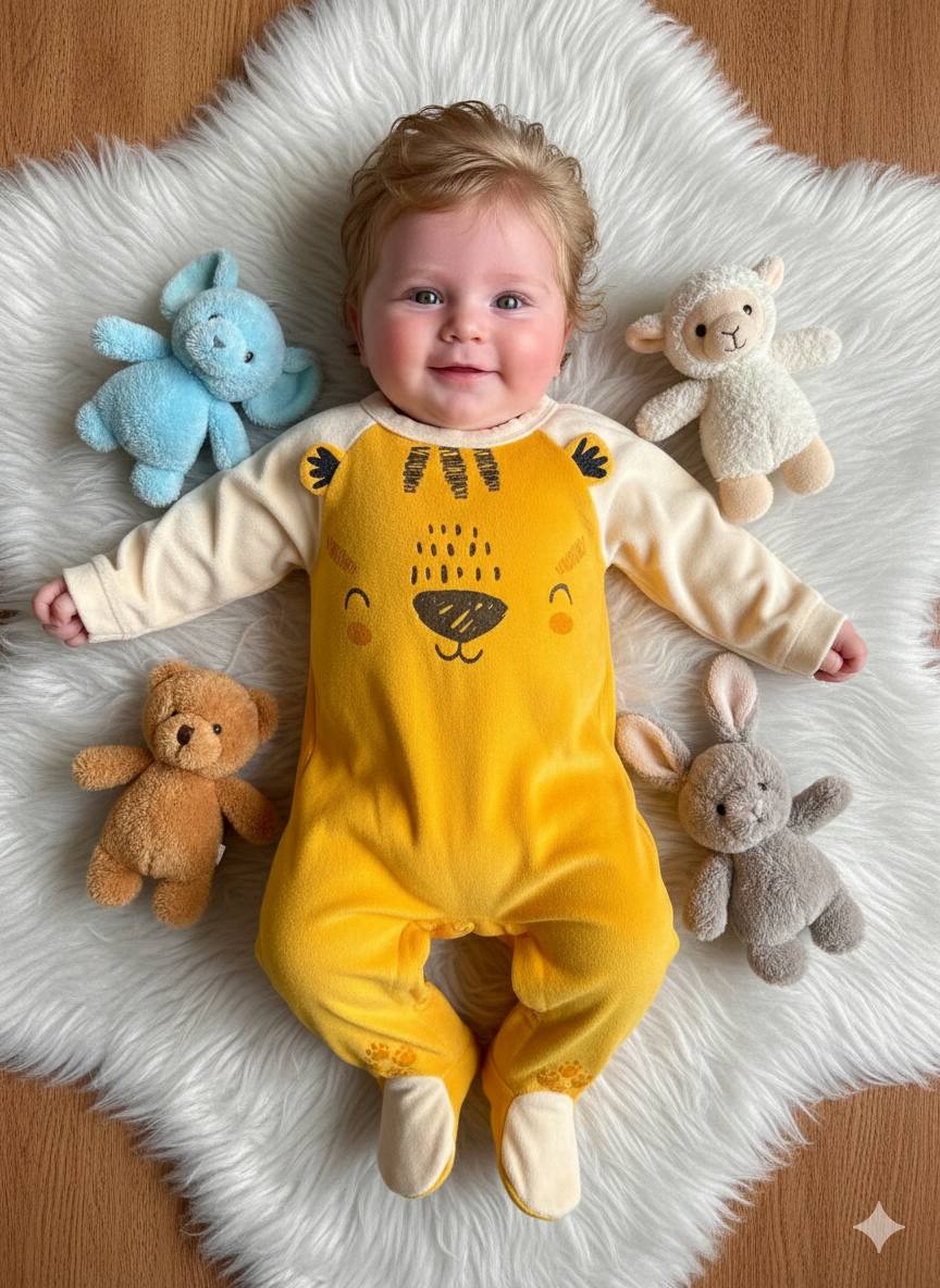 لباس نوزادی طرح حیوانات، با طراحی فانتزی و رنگهای گرم، مناسب برای لحظات شیرین کودکی. این لباسها از پارچهٔ نرم و لطیف تهیه شدهاند تا راحتی کامل را برای پوست حساس نوزاد فراهم کنند. طراحی چاپی صورت حیوانات روی سینه، جزئیات بامزه مثل جای پنجه روی پاها، و رنگبندی ملایم، این لباس را به انتخابی دوستداشتنی برای والدین تبدیل کرده است.