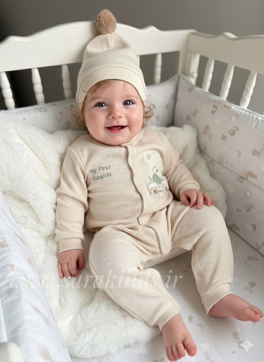 ایمنی پوست: ۱۰۰٪ پنبه بودن و رنگ طبیعی و ملایم، این لباس را کاملاً ضد حساسیت (آنتیآلرژی) ساخته و بهترین گزینه برای پوست فوقالعاده حساس نوزادان است.