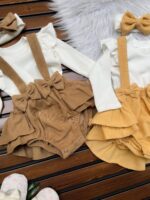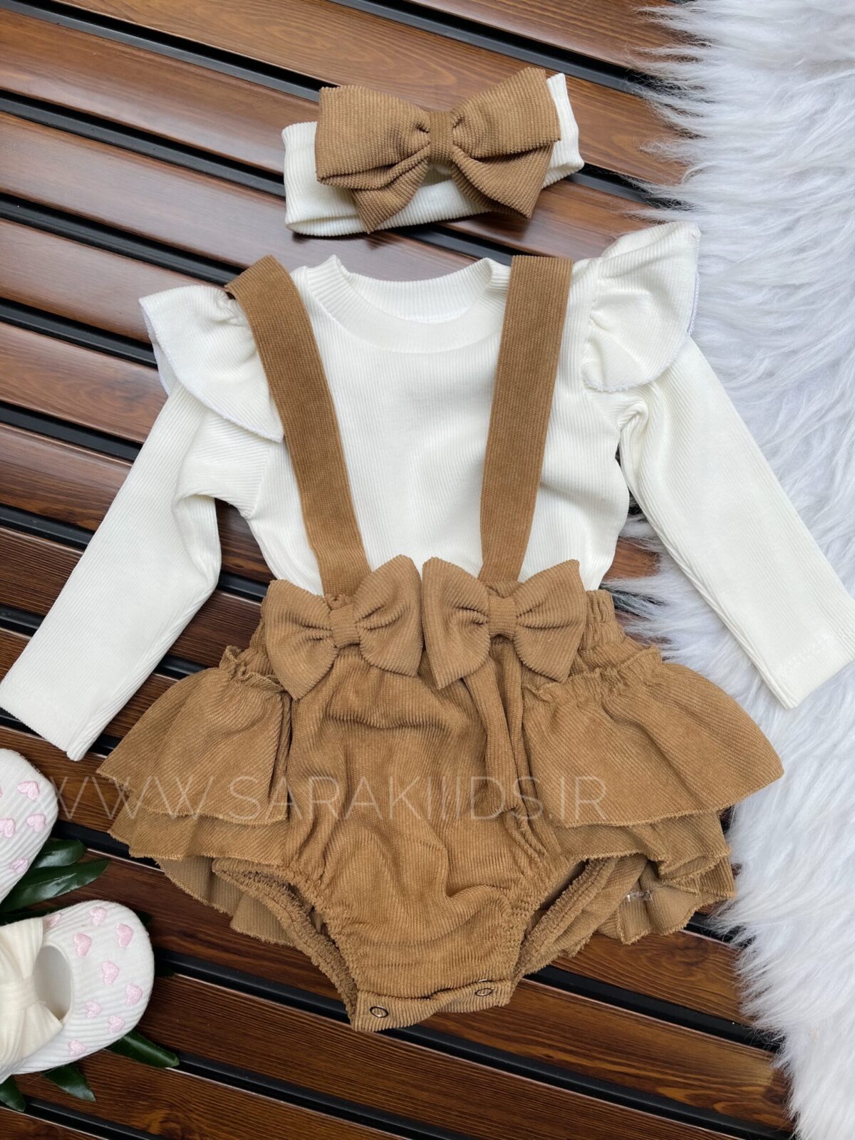 شامل بلوز آستین بلند کبریتی -تل پاپیونی کبریتی و دامن مخمل کبریتی چین دار که بند داره وحالت بادی میشه